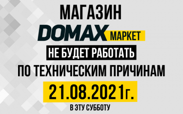 21.08.2021 года по техническим причинам магазин ДОМАКСмаркет не будет работать. Вы можете смело совершать покупки на сайте. С Вами свяжется...