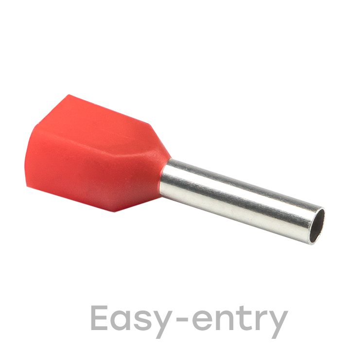Одинарные и двойные втулочные наконечники (НШвИ и НШвИ2) EKF PROxima являются единственными специально разработанными наконечниками под опрессовку, которые полностью заменяют обязательный процесс облуживания многопроволочных медных проводов (типа ПВ-3, ПВС и т.п.) при монтаже различного электрооборудования. Втулочные наконечники состоят из медной луженой трубки, один конец которой развальцован для облегчения ввода многожильного провода и изолирующей манжеты из полипропилена.