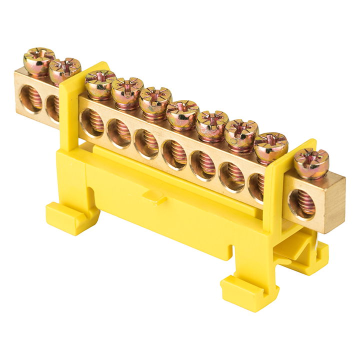 Шина "0" PE (6х9мм) 10 отверстий латунь изолятор тип "Стойка" на DIN-рейку EKF PROxima