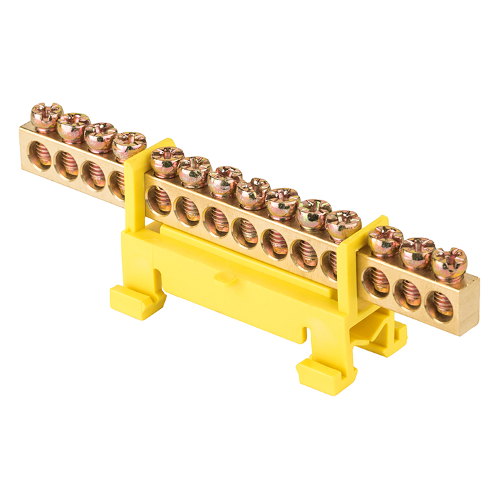 Шина "0" PE (6х9мм) 14 отверстий латунь изолятор тип "Стойка" на DIN-рейку EKF PROxima
