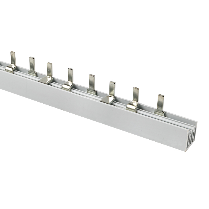 Шины соединительные представляют собой пластины, выполненные из меди (шины на 100 А – из луженой меди), закрепленные в корпусе из диэлектрического материала, не поддерживающего горение, и выпускаются стандартной длиной 1 метр. Шины соединительные делятся на два типа - FORK («вилка») и PIN («гребенка») на номинальные токи 63 и 100 А. Могут быть выполнены в одно- двух- трех- и четырехполюсном исполнений.