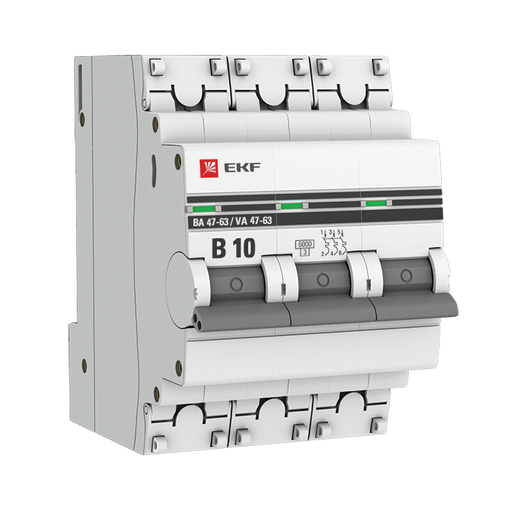 Автоматический выключатель 3P 10А (B) 6кА ВА 47-63 EKF PROxima