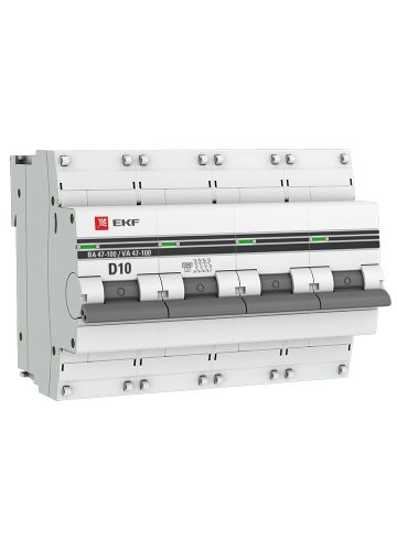 Автоматический выключатель 4P 10А (D) 10kA ВА 47-100 EKF PROxima
