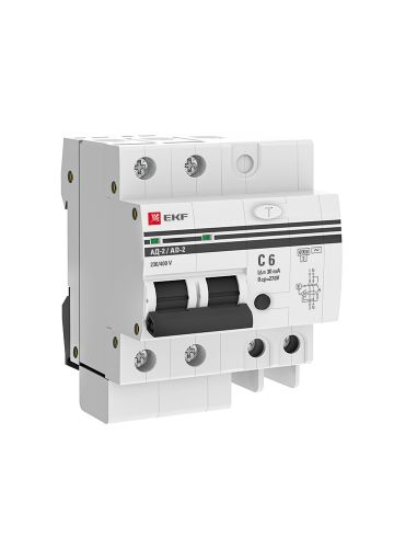 Дифференциальный автомат АД-2 6А/ 30мА (хар. C, AC, электронный, защита 270В) 6кА EKF PROxima