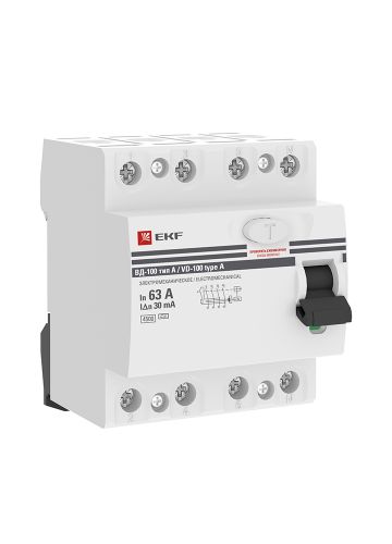 Устройство Защитного Отключения ВД-100 4P 63А/ 30мА (эл-мех, тип А) EKF PROxima