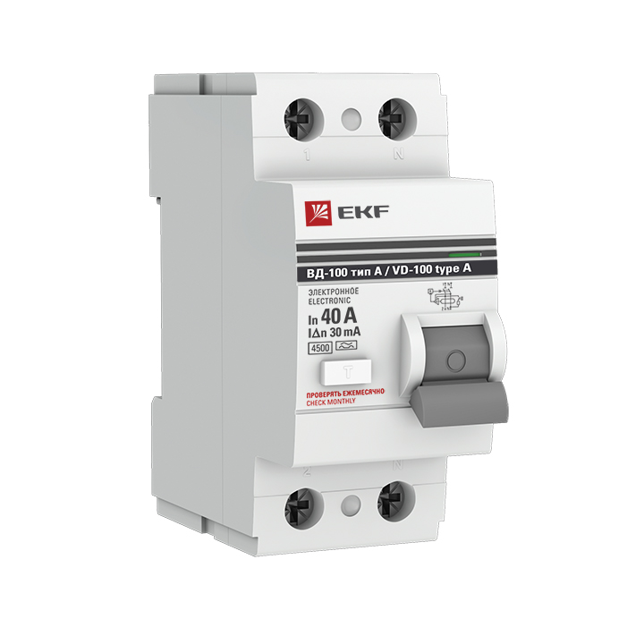 Устройство Защитного Отключения ВД-100 2P 40А/30мА (электр, тип А) EKF PROxima