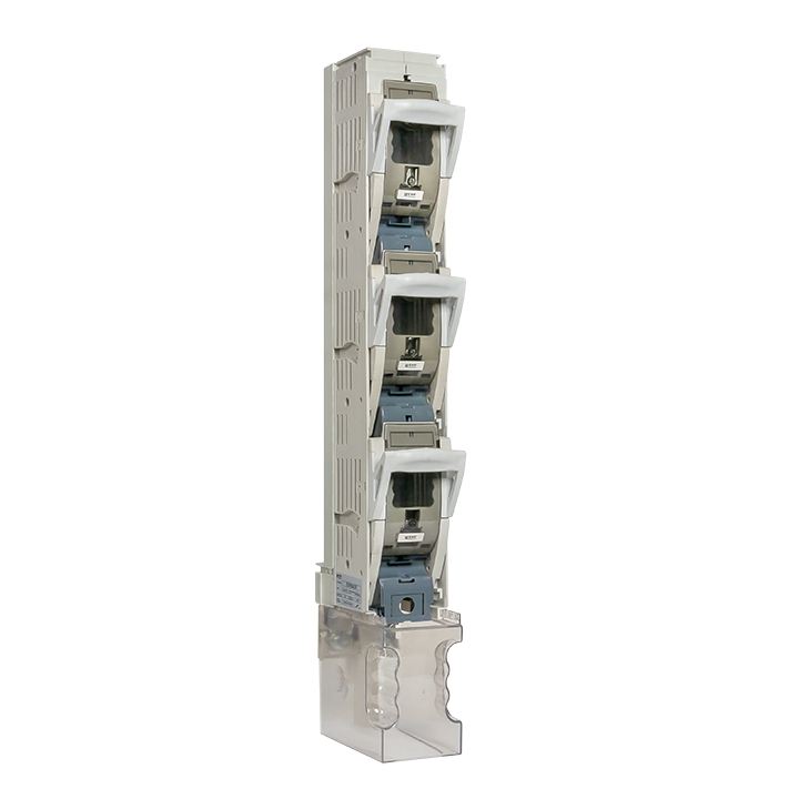 Выключатели-разъединители УВРЭ вертикальные EKF PROxima откидного типа с плавкими предохранителями предназначены для ручного включения-отключения и для защиты от коротких замыканий и перегрузки цепей переменного тока с номинальным напряжением до 690 В частотой 50 Гц (предохранители в комплект поставки не включены). Применяются во вводно-распределительных устройствах, распределительных и шкафах управления и др. Видимый разрыв обеспечивается благодаря откидной крышке, оснащенной держателями предохранителей. При открывании крышки происходит разрыв цепи (первый разрыв происходит в верхней части). Она также выполняет функцию фронтальной защиты от прикосновений. Конструктивно УВРЭ EKF PROxima состоит из трехполюсного основания с контактными зажимами предохранителей, изготовленного из негорючего полиамида со стекловолокном, двух клеммных крышек (верхняя крышка оснащена дугогасительными камерами, за исключением УВРЭ 160 А) и откидной крышки с держателями предохранителей. В крышке предусмотрены контрольные отверстия для измерения напряжения и других параметров специальным щупом. Выключатели устанавливаются на монтажную панель. Конструкция контактных выводов обеспечивает болтовое присоединение шин или проводников, оконцованных кабельными наконечниками. Выводы изготавливаются из меди с антикоррозийным покрытием. Выключатели могут дополнительно оснащаться электромеханическим дополнительным контактом состояния NO + NC. Возможна коммутация алюминиевым и медным проводом.