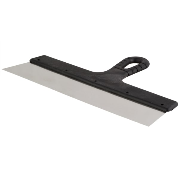 Шпатель предназначен для фасадных работ для нанесения гипсового отделочного покрытия с широким лезвием из нержавеющей стали с удобной пластиковой ручкой