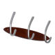 Прочные и стильные вешалки представляют собой сочетание основы в древесных оттенках и хромированных минималистичных крючков. Всего в одном изделии может быть 3 или 5 основных крючков и столько же рожек для головных уборов. Ширина консоли вешалки на три крючка составляет 32 сантиметра, консоли на пять крючков – 54 сантиметра.