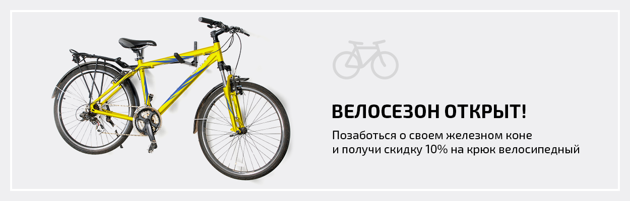 С 1 мая по 1 сентября покупайте велосипедный крюк системы Голиаф со скидкой 10% и решите раз и навсегда проблему хранения велосипеда! Крюк можно установить в гараже, на балконе, в комнате или в коридоре – вы сможете легко и надежно закрепить велосипед на любой вертикальной поверхности, и он не будет занимать много места, а вам станет намного проще обслуживать вашего железного коня: замена цепи, звездочек, колес и покрышек будет происходить быстро и легко. Кроме того, крюк изготовлен из прочной стали, а все элементы, контактирующие с подвешиваемыми предметами, покрыты резиновой оболочкой, предотвращающей появление царапин!